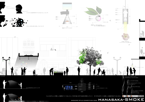 ケムリの粒度・速度に応じて様々な反応を示す装置を街に散りばめる提案。