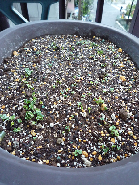 先日、立派な盆栽鉢に妻が種を蒔いていました。