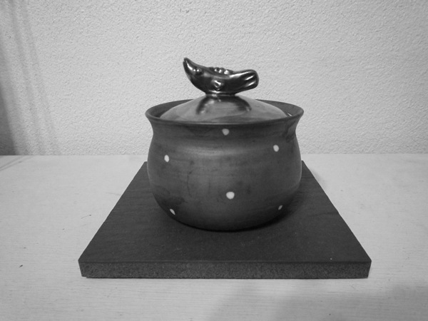 私はもう少し丸みをおびて、いわゆる形がいいものを推したが、妻と女性店員は座りがよいこちらの作品を選んだ。