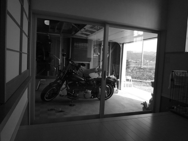ガレージには堂々のHarley-Davidson.