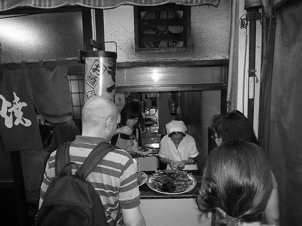 おじ様の大声が通りまで響いて、一本90円のもつ焼にも買い物客が群がる。