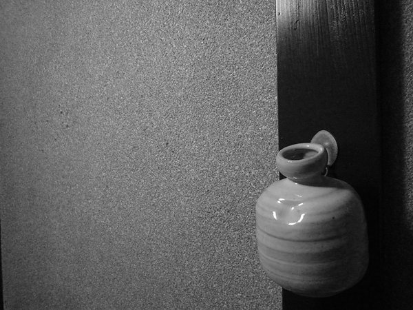 寝室に向かう廊下にある掛花入れです。