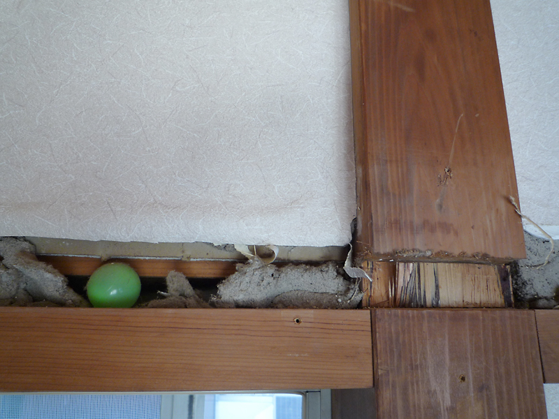 和室の解体を行っていると、長押の奥にスーパーボールが挟まっていました。