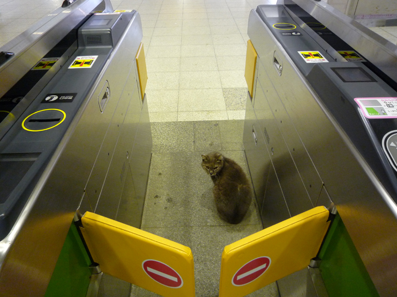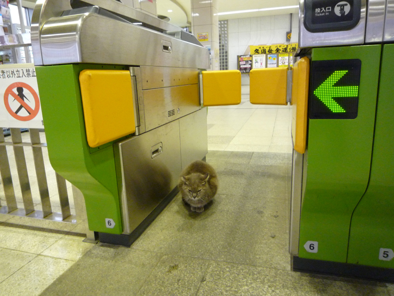 事務所に戻るため駅に向かうと、改札に寒そうなネコが…
