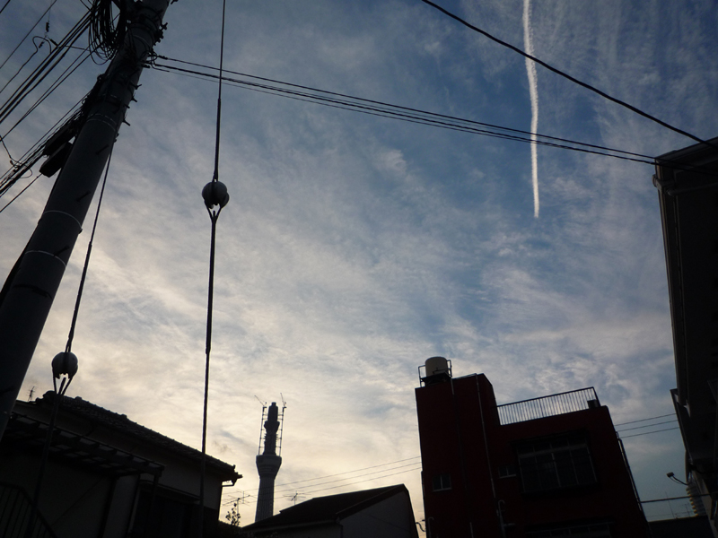 ポッカリ空いた空から500m目前のスカイツリーと