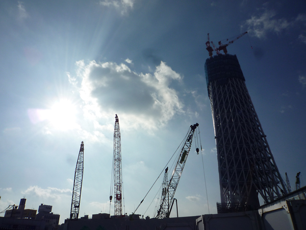 タワーについては、建設中のこの時期を表現し、時節を思い起こせるデザインを考えていたのですが、やっぱり京島とタワーは少々離れていて、しかも住所も違う。